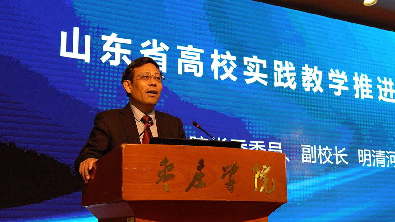 11月17日下午,为强化高校实践教学工作,提高本科教学质量,由山东省教育厅主办、我校承办的山东省实践教学推进会在音乐厅举行,校党委委员、副校长明清河与会并致辞。山东省教育厅高教处副处长郭念峰主持会议,全省50余所高校的副校长、教务处负责人、实践教学负责人等共170名代表参加会议,我校部分教学管理人员、部分参加2018产教融合平台建设经验交流会的省外代表参加了会议。