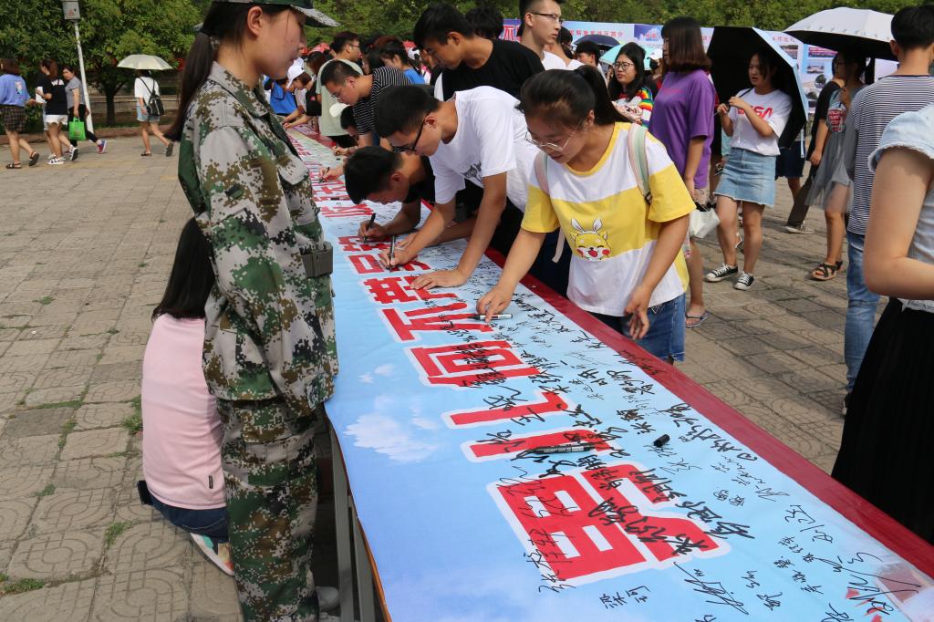 活动现场,与会人员共同观看了《参军报国 准备出发》解放军2018年征兵宣传片,进行了“报效祖国”签名活动。一曲由快闪组合带来的“我爱你祖国”歌舞,将现场气氛推向了高潮。