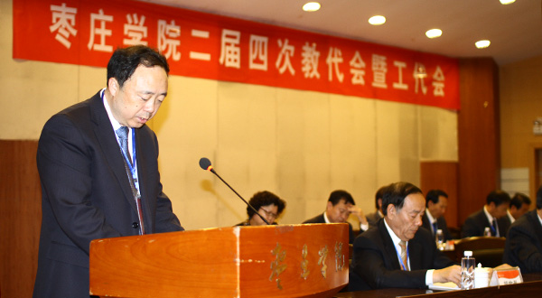 校长曹胜强代表学校作题为“深化改革 强化内涵 群策群力 善作善成,推动学校各项事业科学发展、和谐发展”的工作报告。《报告》回顾了二届三次教代会以来学校各项事业所取得的新成就:一是管理体制上划和人事改革顺利完成;二是教育部本科教学工作合格评估顺利通过;三是本科教学质量和教学改革工程成绩喜人;四是人才队伍建设水平和科研工作能力进一步提高;五是以世界语教学与研究为平台的国际合作与交流平台成功打造;六是基础设施建设和办学装备条件明显改善;七是大学生创新创业能力和综合素质不断提高;八是以后勤服务为保障的平安和谐校园积极营建;九是党风建设的加强推动学校科学发展。
