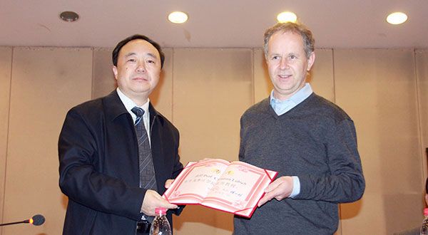 曹胜强校长分别为两位教授颁发了名誉教授聘书并发表讲话。曹校长对专家来校指导和举办学术报告表示热烈的欢迎和衷心的感谢,并向专家介绍了DB中国旗舰官方网站的基本情况。曹校长指出,两位世界级大师受聘为我校名誉教授,是DB中国旗舰官方网站的一件幸事、一件大事,必将对我校的人才培养、科学研究提供更高的平台,恳切希望能得到两位专家多方位的指导,也期待着今后在更多领域的交流与合作。