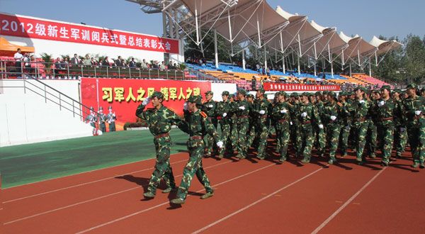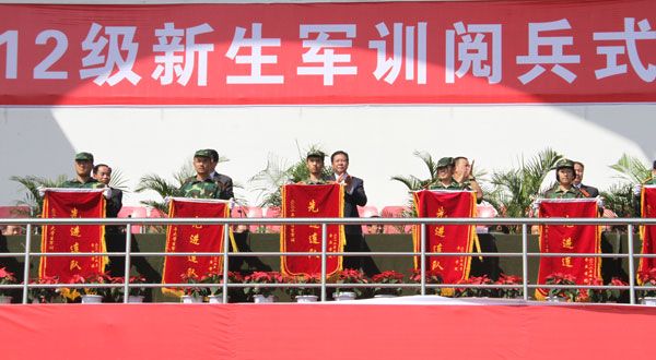 秋风送爽,军歌嘹亮。9月14日,我校2012级新生军训阅兵式暨总结表彰大会在校体育场隆重举行。校领导胡小林、曾宪明、高庆喜、李进京,枣庄军分区参谋长孟祥军,枣庄市中区人民武装部部长单德岭,中国人民解放军71569部队副政委李纯德出席大会。