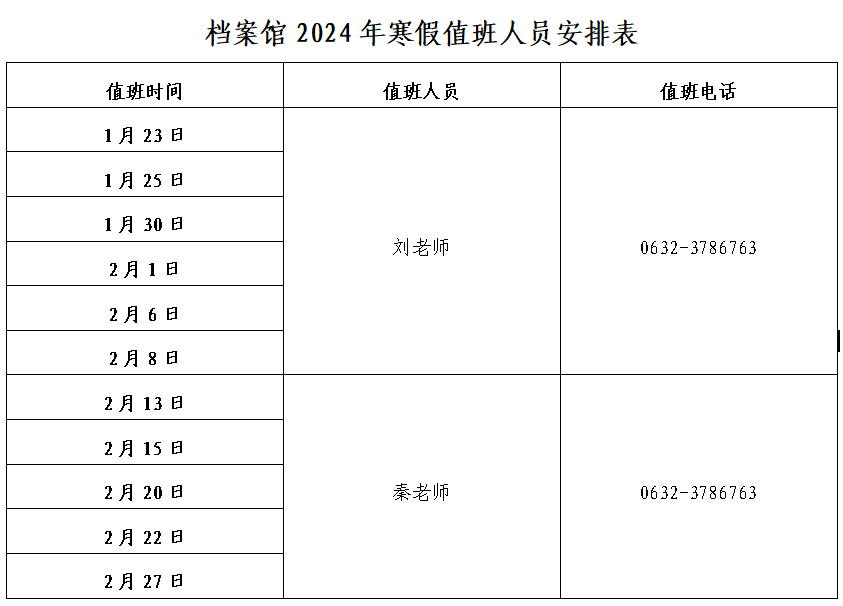 工作人员审核通过后将于每周周二、周四上午8:30-11:30集中、依次办理。为有效沟通,提高查档效率,请务必准确填报查档需要的各项信息、保持电话畅通。如有疑问请于每周周二、周四上午拨打值班电话:0632-3786763。
