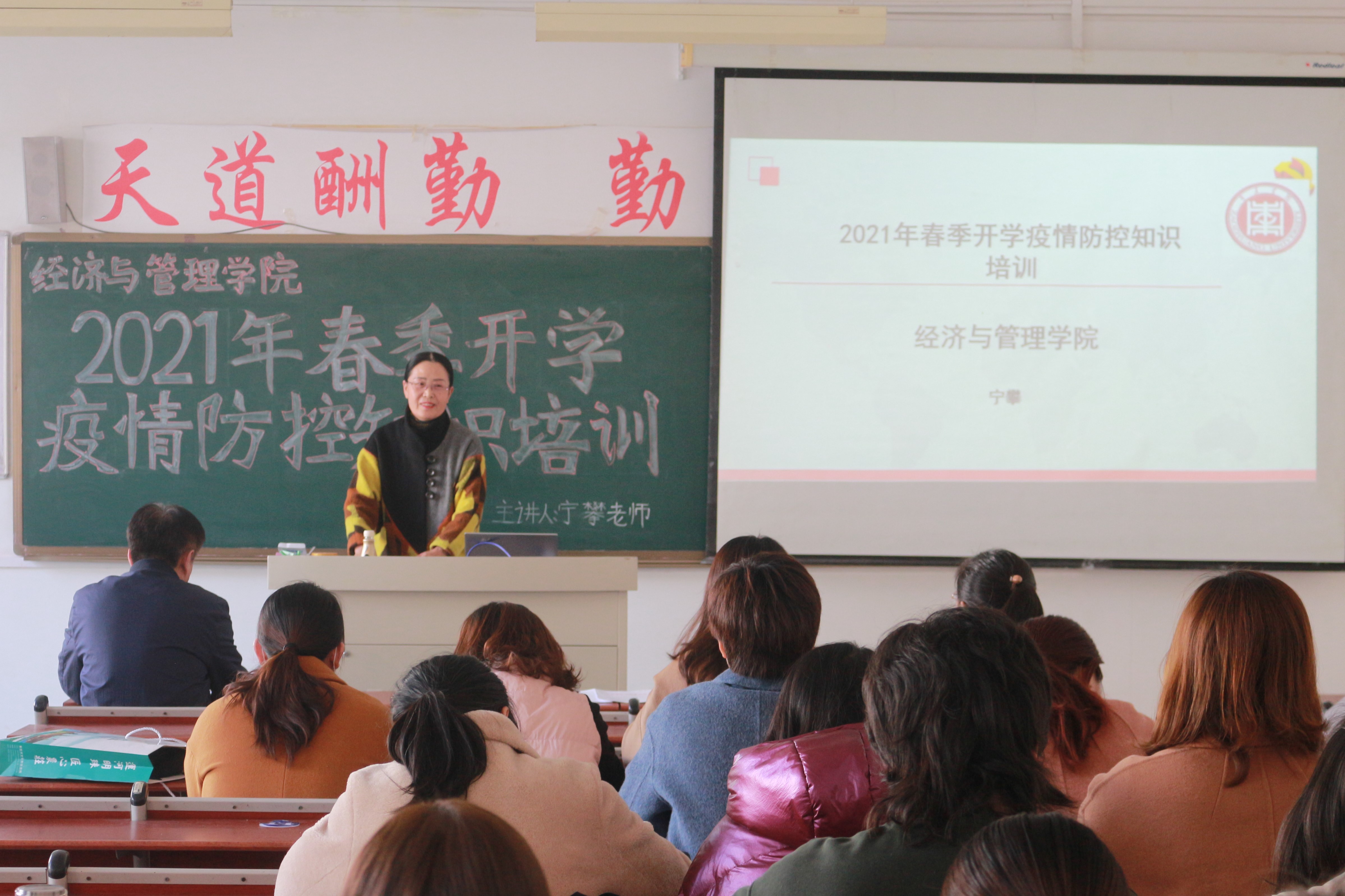 为全面做好新学期疫情防控工作,经济与管理学院于3月3日在理工实验楼S3401室开展“疫情防控知识培训活动”,党总支书记宁攀主讲,全体教职工参加。