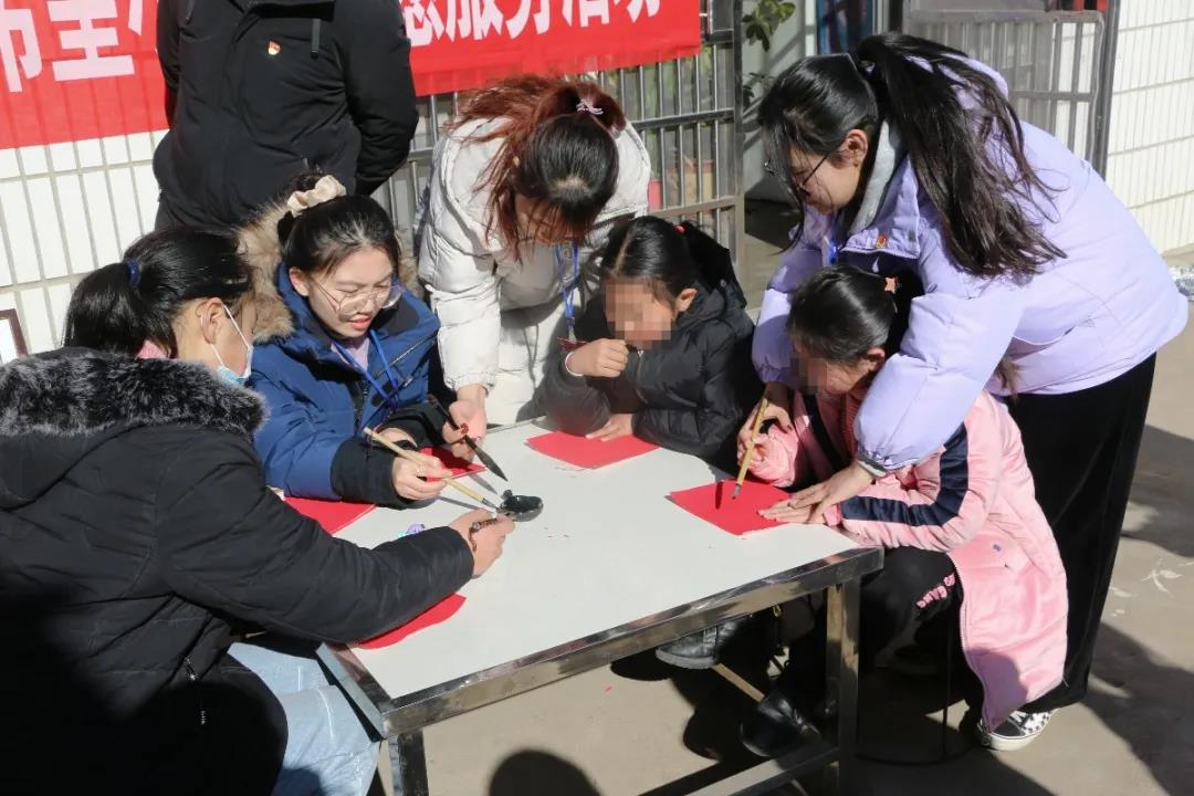 各志愿者服务队带着学习生活用品来到“希望小屋”,与受助对象共聚一堂,大手拉小手,通过亲情陪伴、学业辅导、思想引导、心愿达成等形式多样的服务活动,为孩子们学习生活提供帮助,助力他们健康成长。活动现场,同学们还各显其能,结合专业特长让活动更有吸引力。美术与艺术设计学院志愿者的剪纸、书法和手工制作,音乐与舞蹈学院的吉他弹唱等辅导,都让孩子在沉浸体验中感受艺术之美。