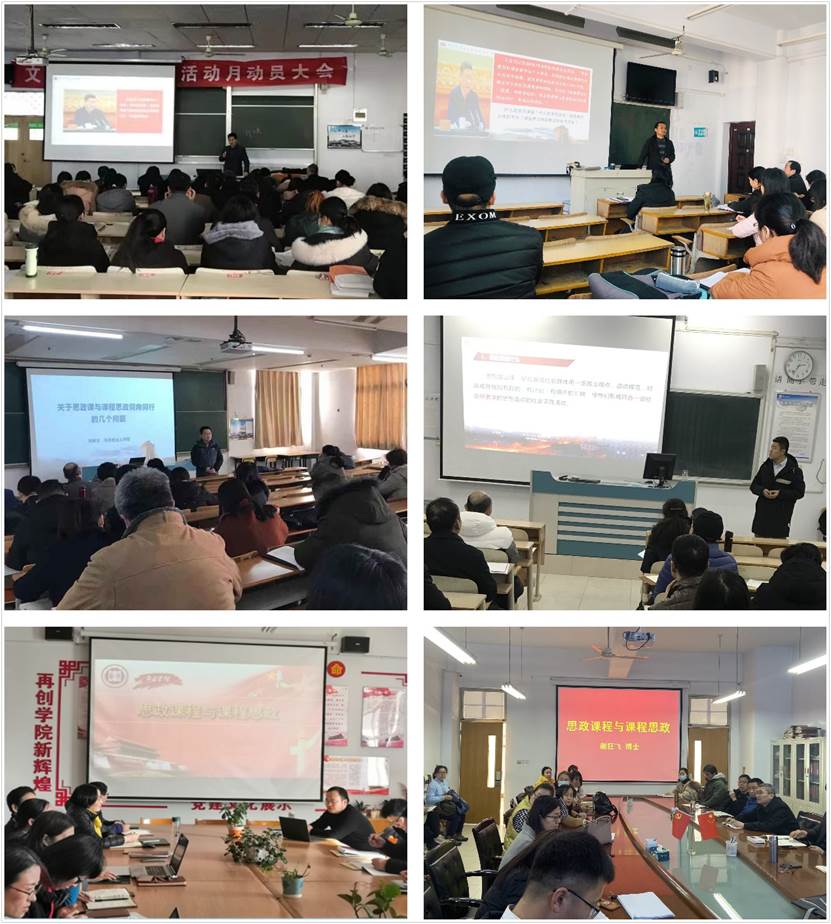 为全面贯彻《DB中国旗舰官方网站“不忘初心,牢记使命”主题教育思想政治工作专项整改方案》,强化思政课教师与专业课教师的交流沟通,强化“育人合力”,增强育人本领,按照学校“777互联互通育人工程”中马克思主义学院教师为专业课教师讲一次思政课的相关工作要求,马克思主义学院精心选题,集体备课,打磨教学课件,成立以教授、副教授、博士为主体的教学团队,利用十二月的主题党日,以“思政课程与课程思政”为题,为全校二十一个二级学院带去了一堂堂精彩的主题思政课。