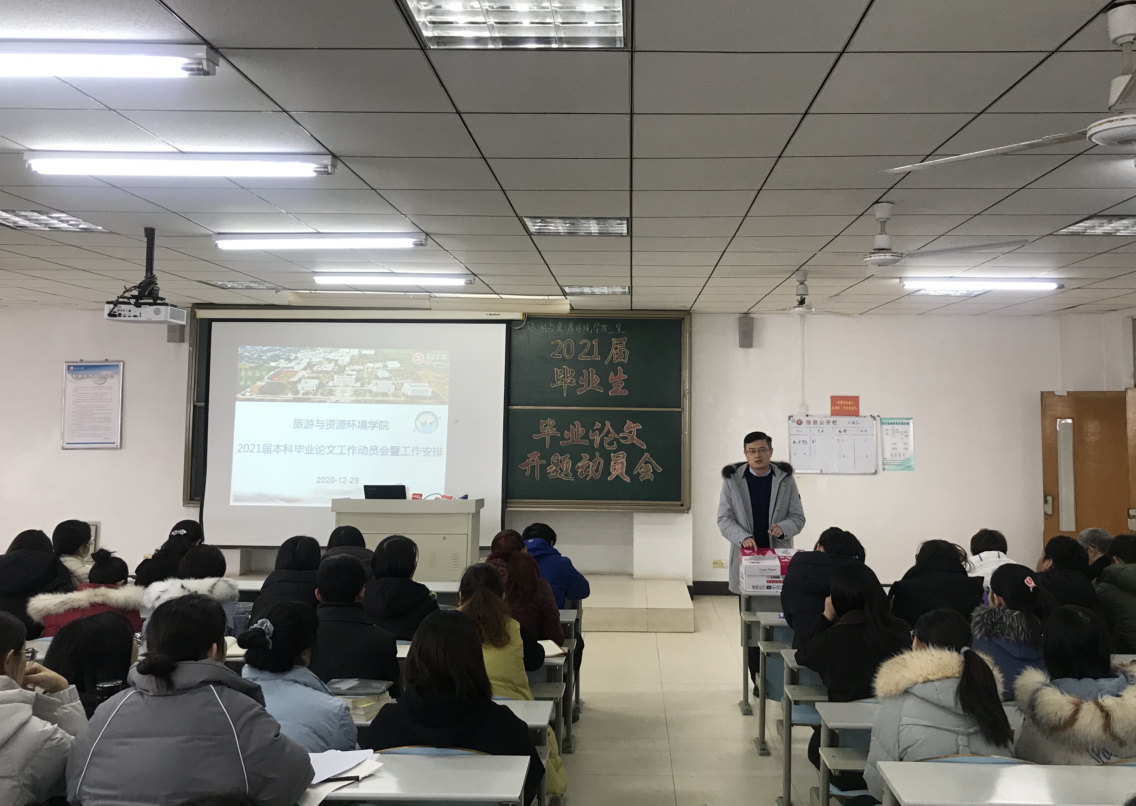 为了帮助同学们规范论文写作,争取为自己的大学生活交一份圆满的答卷,12月29日上午,旅游与资源环境学院在理工楼2505召开了2021届本科生毕业论文动员会议。2021届全体本科毕业生、论文指导老师、班主任和辅导员出席了会议。会议由院长王满堂主持。