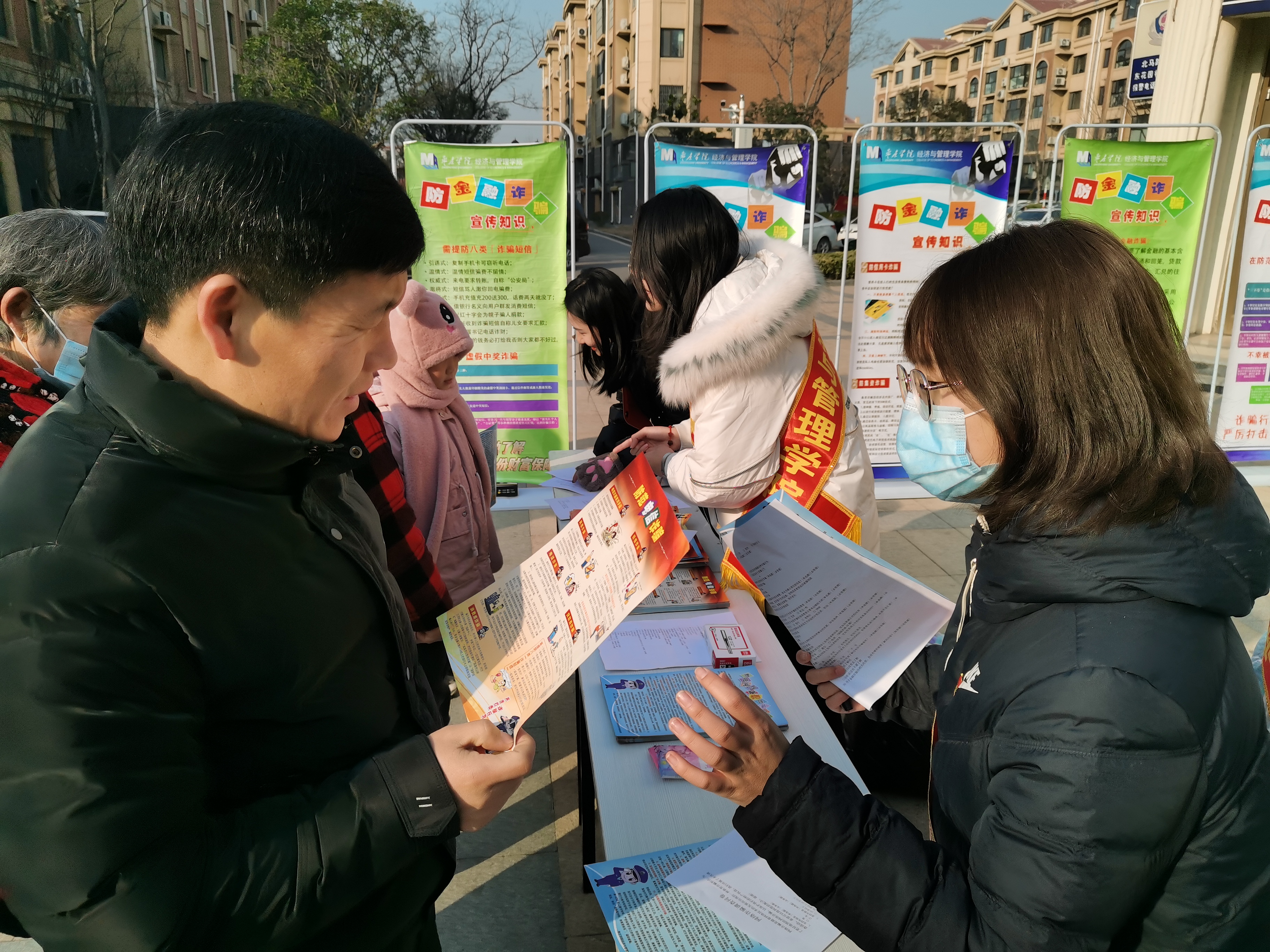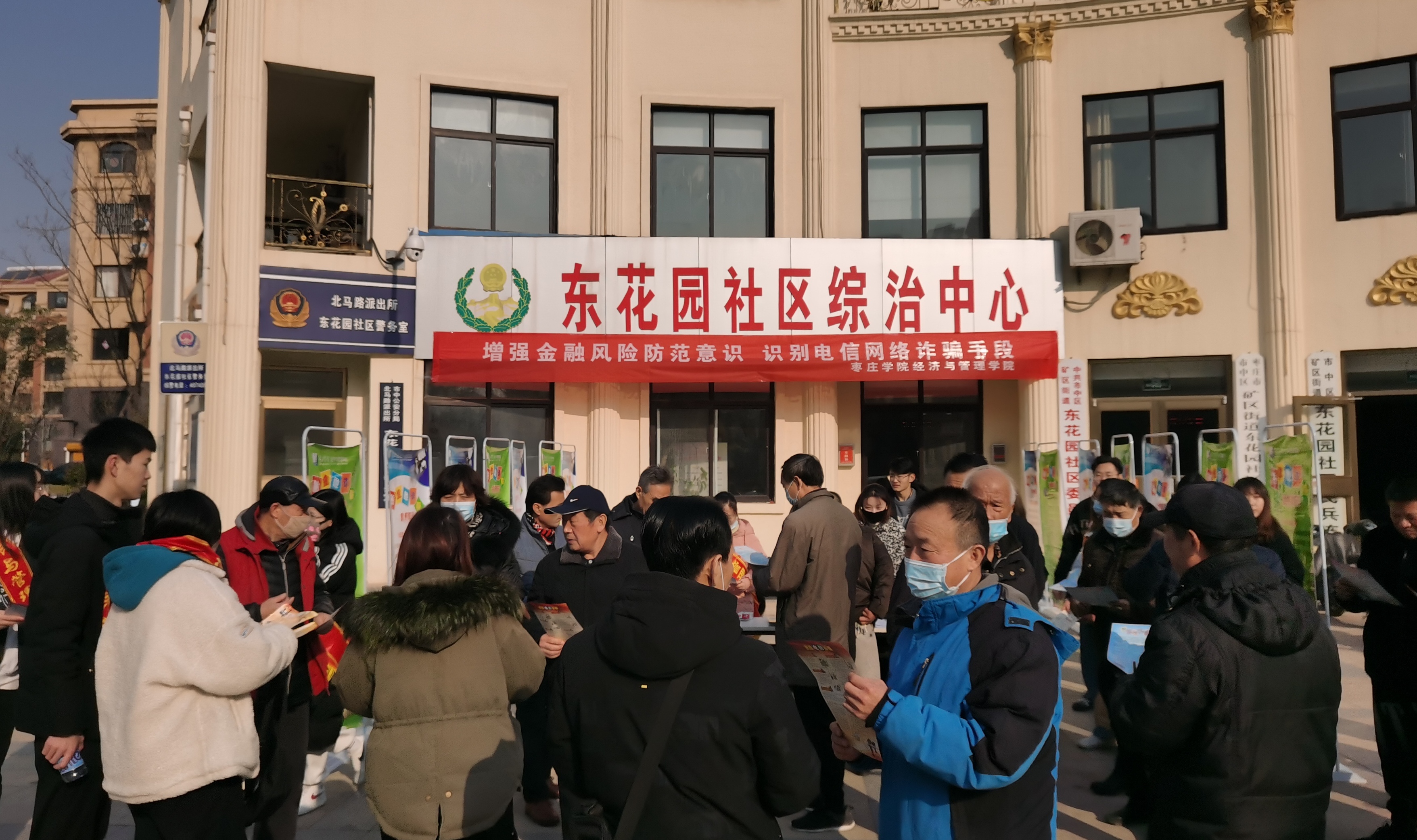 为贯彻落实党的十九届五中全会精神,加强校社合作,共同推动新时代文明实践志愿服务工作,12月20日,经济与管理学院与矿区街道东花园社区共同开展“党建引领,防范金融诈骗志愿服务进社区”活动,学院党总支书记宁攀带队,师生党员40余人参加活动。