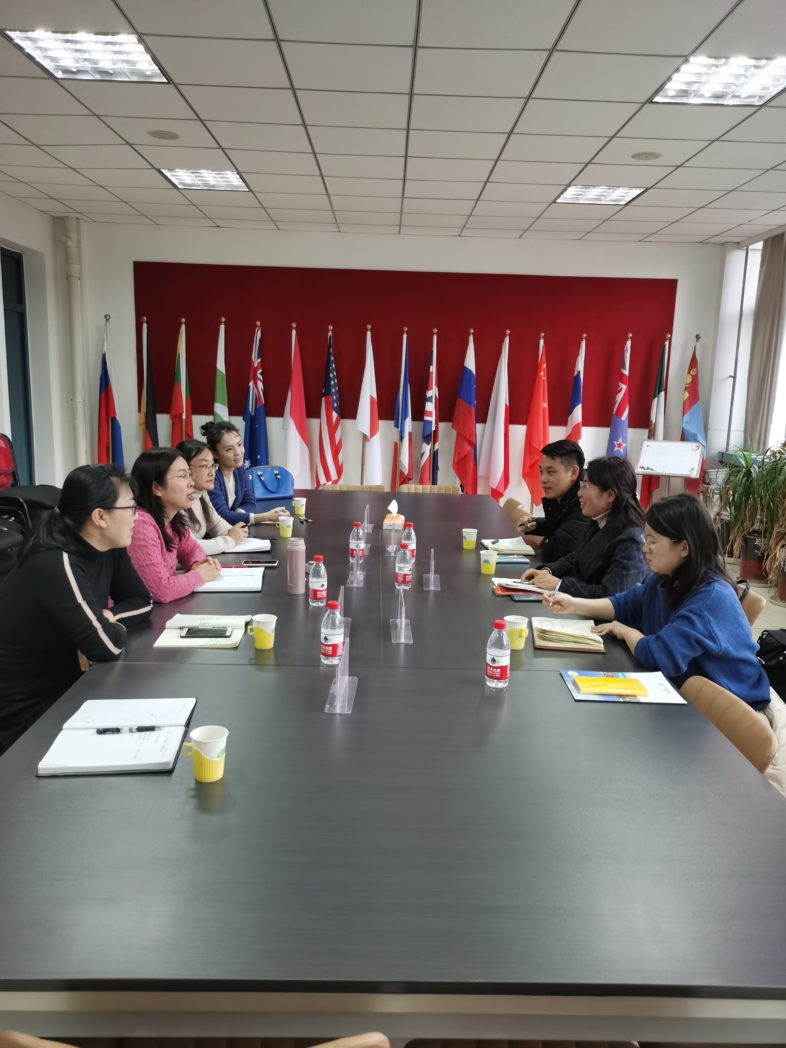 下午,褚夫敏一行赴济南大学国际教育交流学院考察交流。褚夫敏一行与济南大学国际教育交流学院院长、国际学生管理办公室主任孙岩梅,济南大学国际教育交流学院党支部书记、国际教育交流学院副院长、国际学生管理办公室副主任刘红梅及招生科、事务管理科、综合科负责人就来华留学生培养、日常教学管理、留学生奖学金管理以及招生宣传等一系列问题进行了深入的交流和探讨。