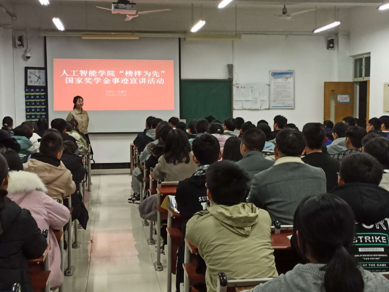 11月24日,人工智能学院在墨子楼3517教室举办题为“榜样为先”的国家奖学金事迹宣讲活动。