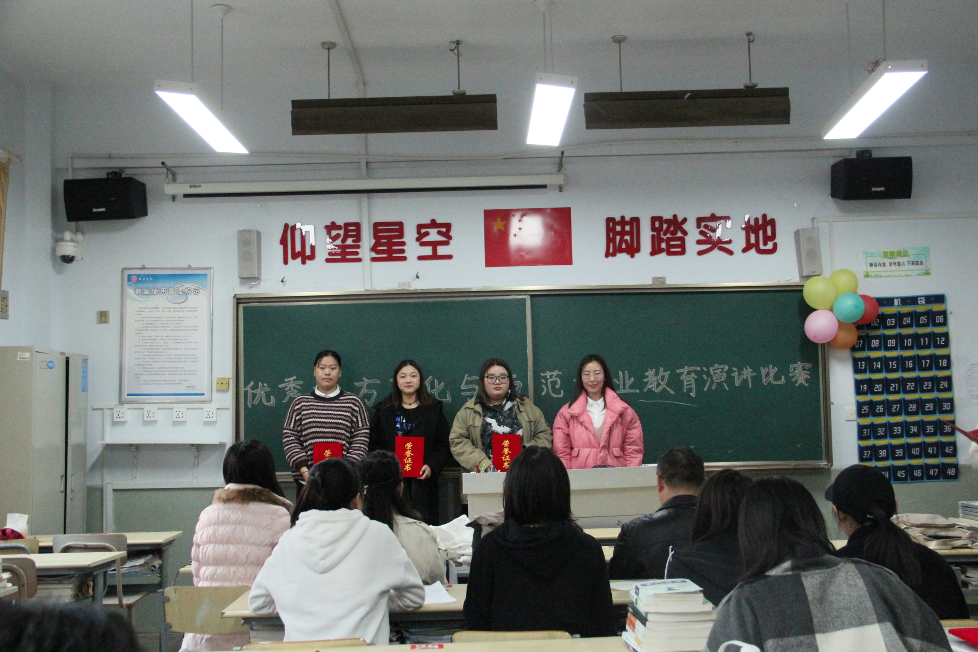 最终,经过激烈的角逐,宋元敏同学获得本次演讲大赛一等奖,付莹、陶然、鹿康宁同学获得二等奖,刘依旖、毛思怡、王潇同学获得三等奖,刘新湛、魏元慧、潘明月等同学获得本次大赛优秀奖。