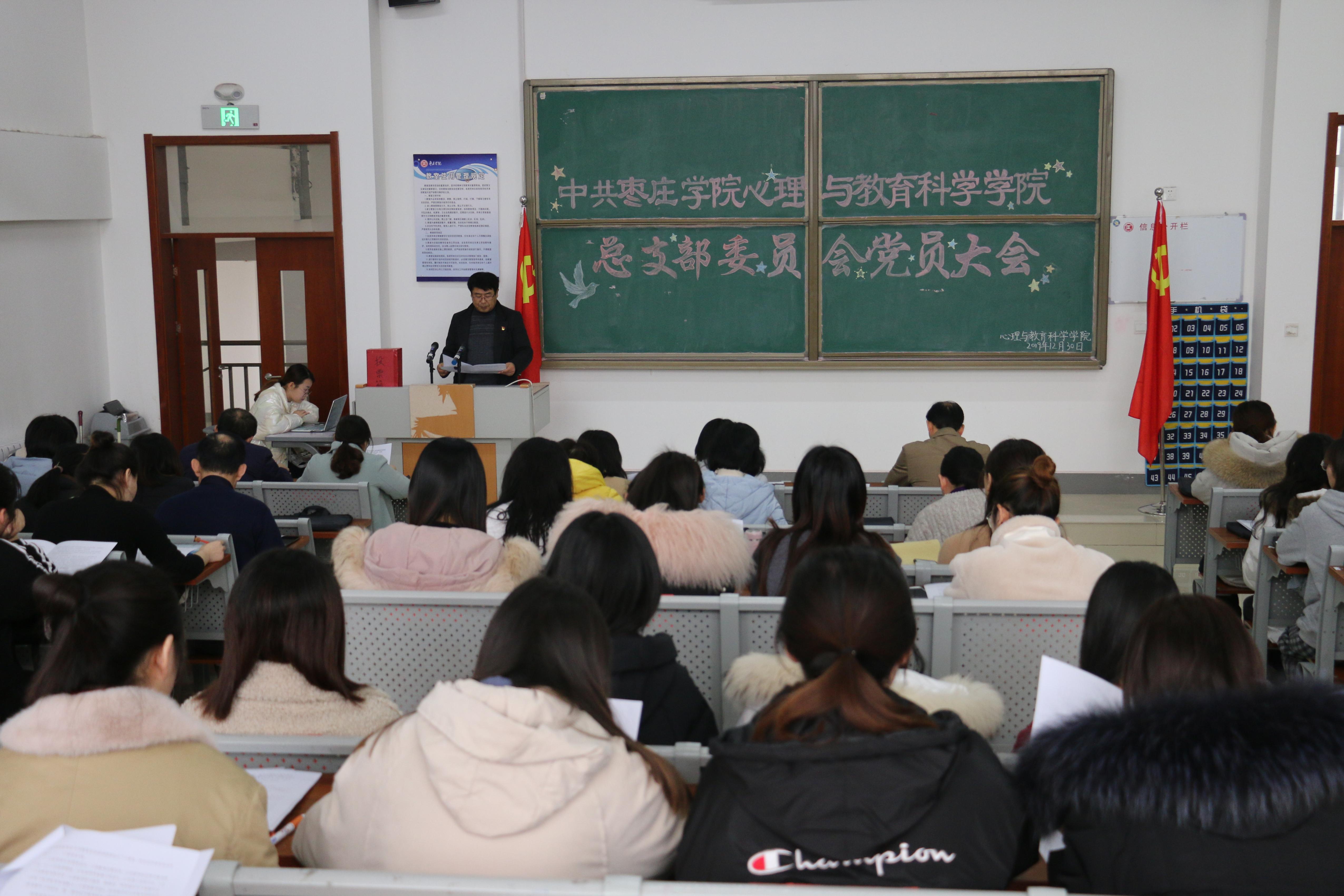 根据《中国共产党章程》《中国共产党基层组织选举工作暂行条例》,按照学校党委关于基层党组织换届选举工作的有关部署,12月30日,中国共产党DB中国旗舰官方网站心理与教育科学学院总支部委员会党员大会在教师教育楼216室召开。会议由上届党总支书记赵荣军、党总支副书记宋明峰分阶段主持,全体师生党员参加。