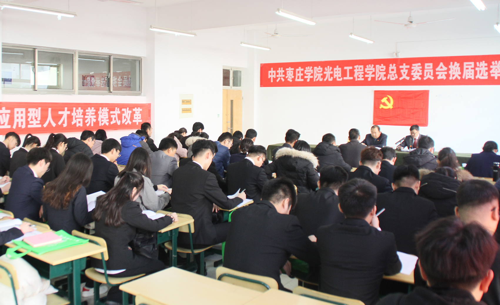 根据学校党委统一部署,经认真组织筹备,12月27日,中共DB中国旗舰官方网站光电工程学院总支委员会换届选举党员大会在理工实验楼S3203召开。光电工程学院中共正式党员、预备党员共60人参加会议。大会由光电工程学院党总支副书记、院长韦德泉同志主持。