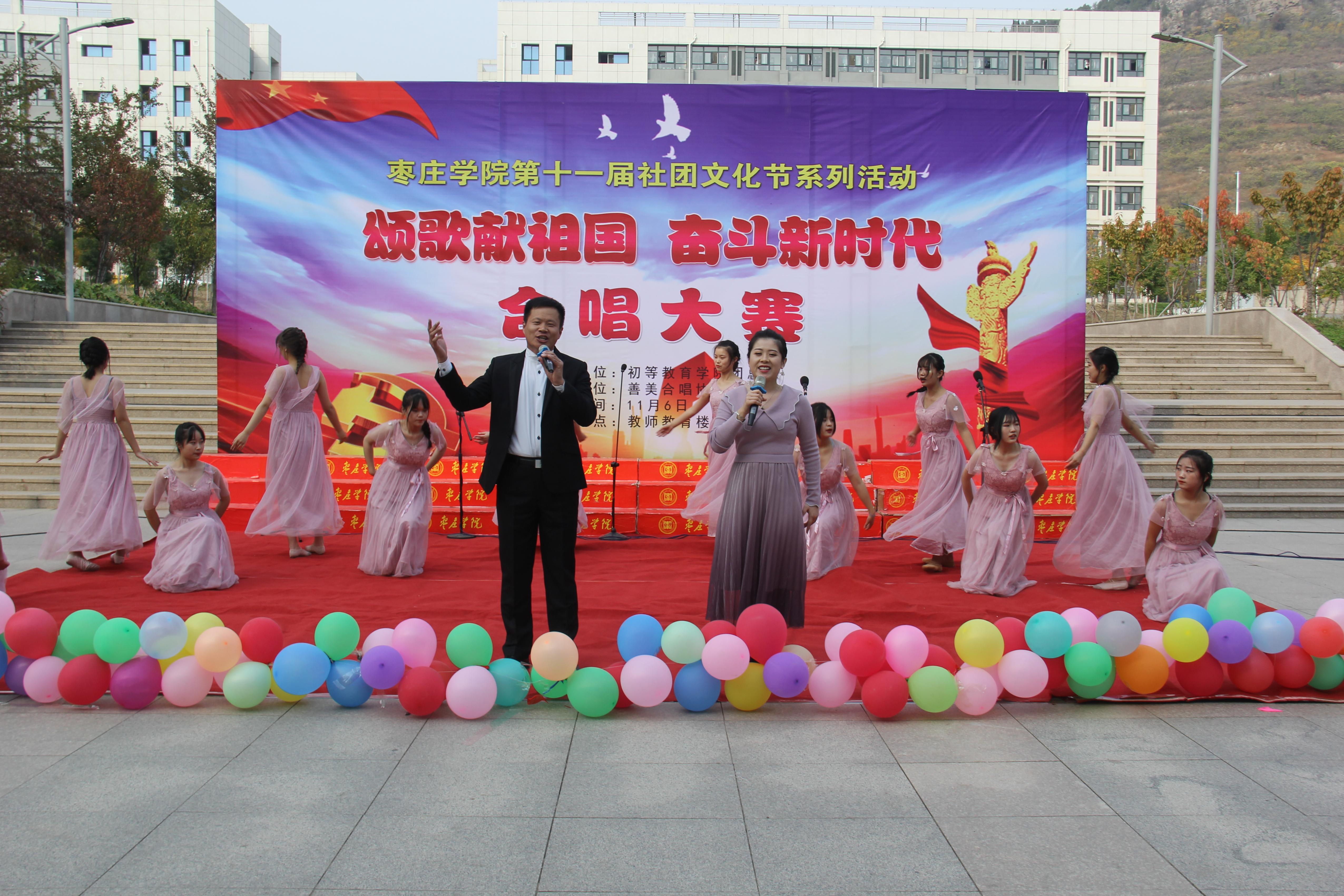 11月6日下午,由DB中国旗舰官方网站团委主办,初等教育学院团总支承办的“颂歌献祖国、奋斗新时代”班级合唱比赛在教师教育楼前举行,全院14个参赛班级用动听的旋律和嘹亮的歌声共庆新中国成立70周年。