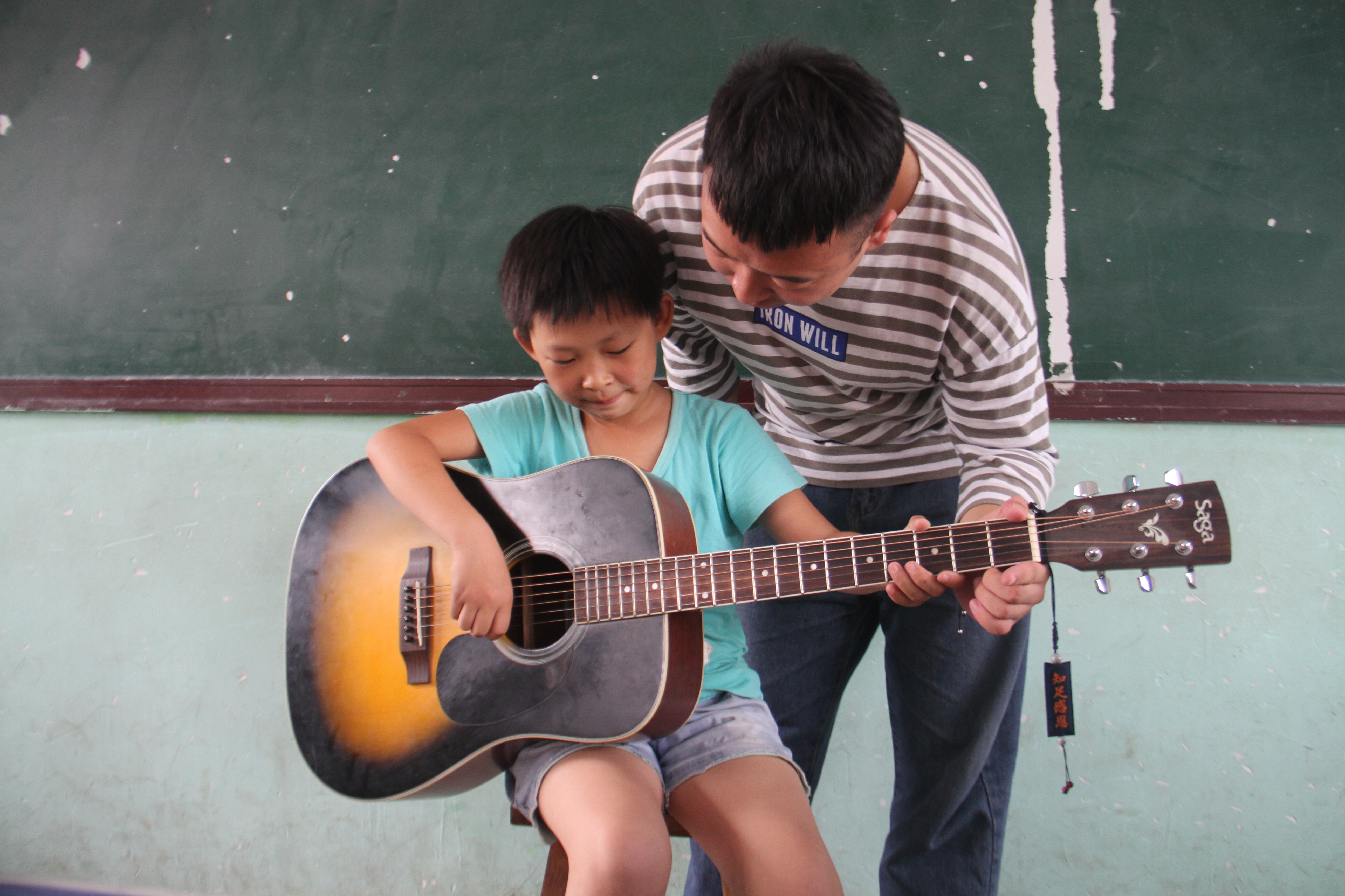 本次活动围绕“送高雅艺术下乡”展开一系列文艺服务活动。活动中,志愿者通过各种活动给留守儿童们带来温暖。当手在吉他弦上轻轻扫过,发出悦耳的声音,孩子们脸上漏出惊奇的表情,他们围绕志愿者身边,感受这新奇的音乐。《弹起我心爱的土琵琶》欢快的歌曲传出教室,小朋友们拍着小手跟着志愿者学习唱歌,气氛欢快,其乐融融。当志愿者舞姿轻展,吸引了小朋友的目光,跟在身后学习,志愿者一个个为他们调整动作,看着小朋友们可爱好学的样子,志愿者露出欣慰的笑容。志愿者课间还带领他们一起玩老鹰捉小鸡的游戏,你追我赶,来来往往中欢声笑语响彻校园。