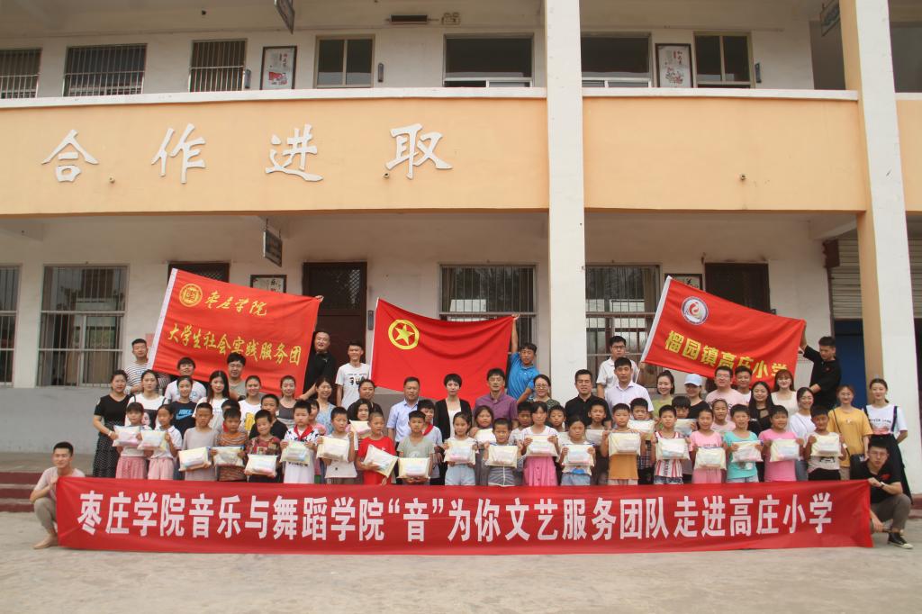 7月4日,音乐与舞蹈学院 “音”为你文艺服务团20余人,在党总支书记高原和指导老师带领下到枣庄市峄城区榴园镇高庄小学开展文艺服务。共青团峄城区委书记付晓娟,榴园镇党委委员、组织委员李振海,榴园镇团委书记张洋也一同前往。