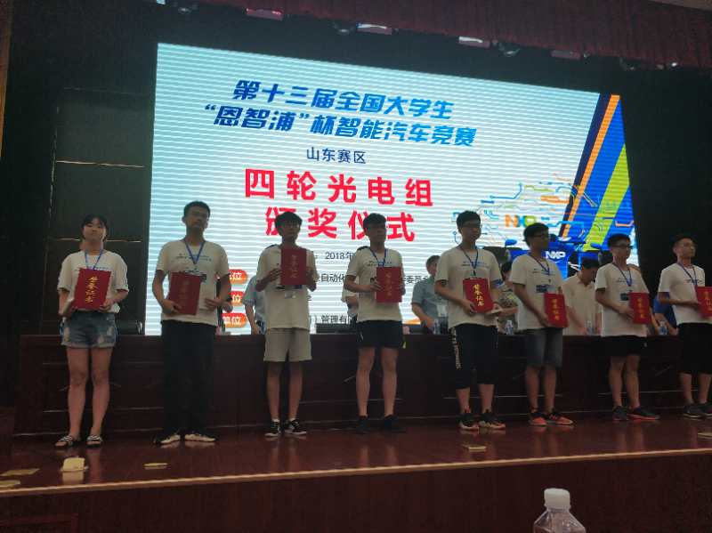根据智能汽车的原理不同,此次大赛分为光电组、节能组、电磁组、信标组、两轮直立组、双车会车组六个类别小组。我校参赛队参加了光电组和电磁组、节能组的比赛。在徐伟院长和殷帅、张业伟、李辉等老师的辛勤指导下,光电组的牛树青、吴海晨、陈博文,节能组的尹成海,电磁组王利民、宋修扬等参赛队员刻苦钻研,认真实验,设计出的智能赛车代表我校与众多经验丰富的高校代表队同台角逐,最终以优异的成绩获得山东赛区光电组“一等奖”,并取得决赛第二的好成绩。