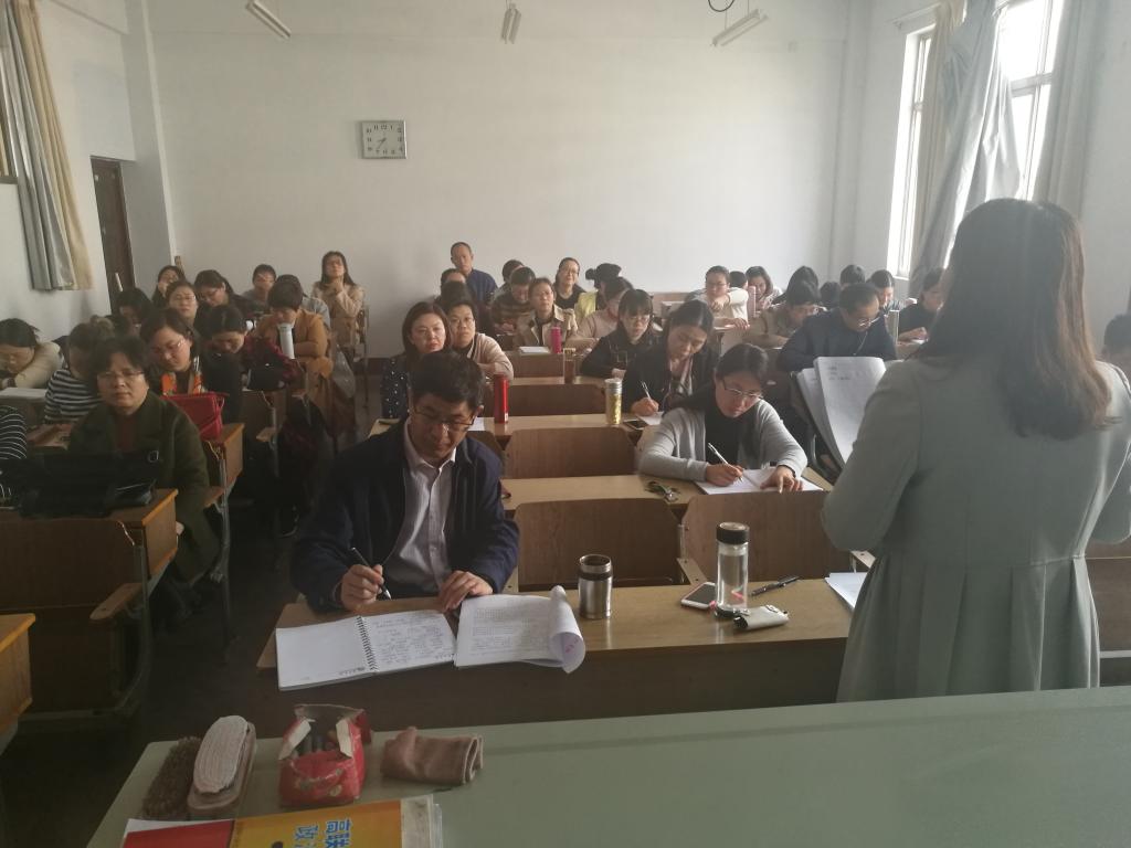3月14日下午,外国语学院在文科楼313教室召开全体教职工会议,再一次对培训班的会议精神进行了全面解读,对外国语学院2018年的重点工作进行了具体的安排与部署。