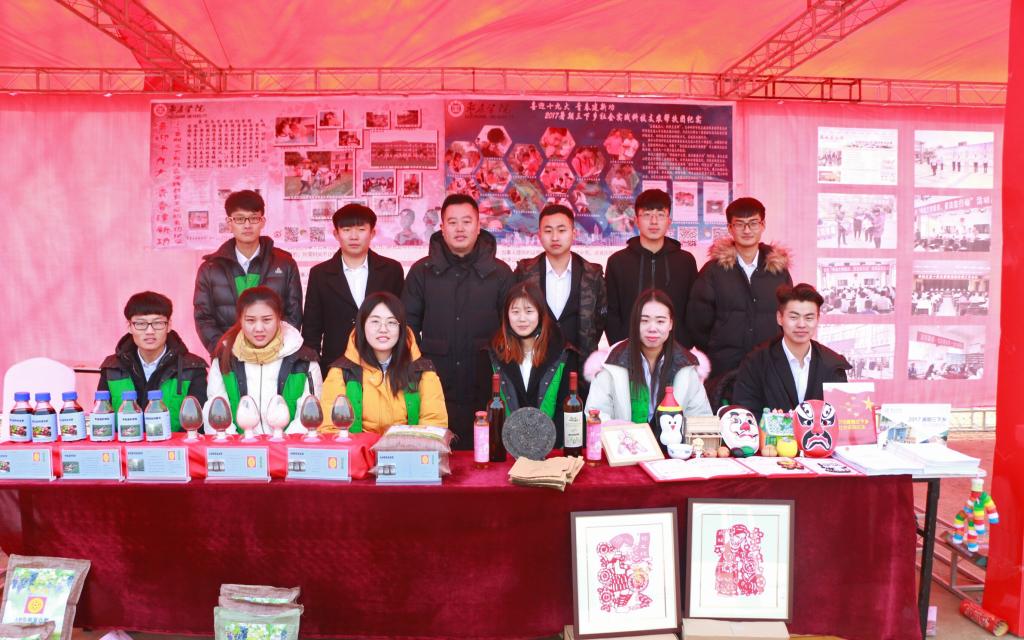 1月15日,2018年全国文化科技卫生“三下乡”山东分会场集中示范活动在枣庄市薛城区陶庄镇中华车祖苑广场举行。我校部分三下乡志愿代表在姜周老师的带领下赴会场展区向当地村民讲解展示我校三下乡的部分成果。
