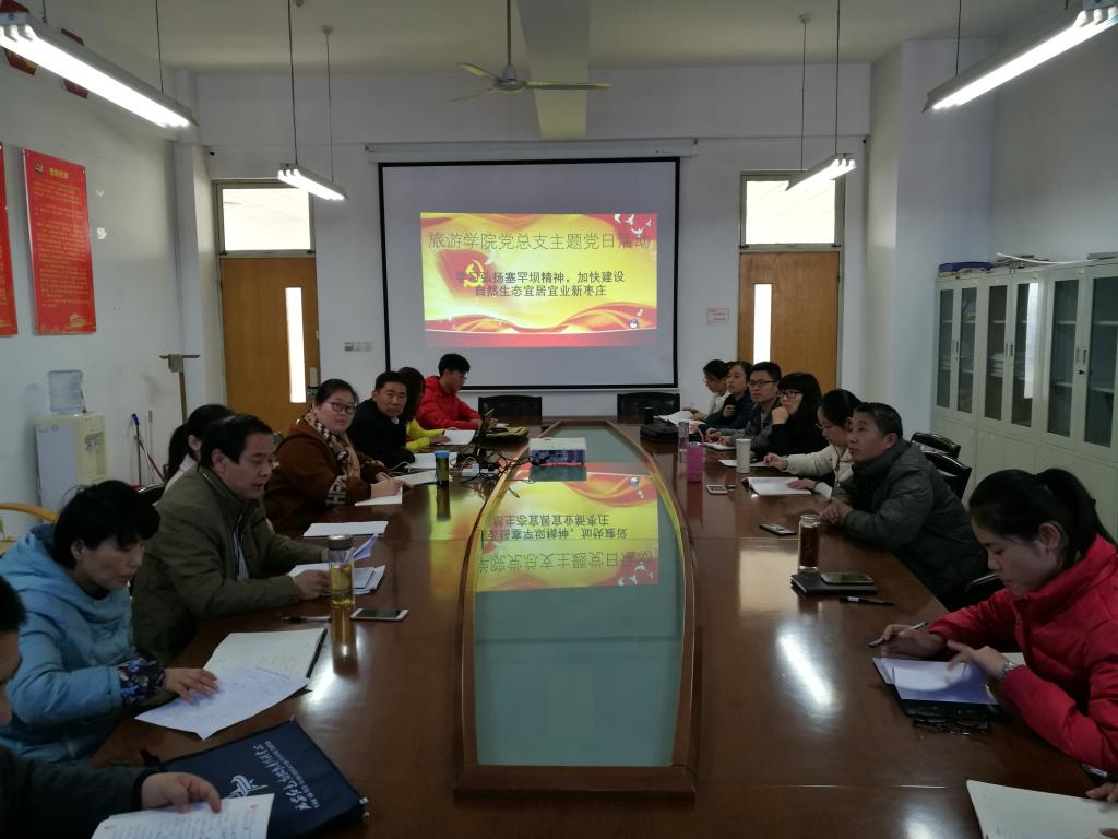为大力弘扬塞罕坝精神,加快建设自然生态宜居宜业新枣庄,旅游与资源环境学院于11月22日开展以“学习弘扬塞罕坝精神,加快建设自然生态宜居宜业新枣庄”为主题的党日活动。活动由赵全科院长主持,全体党员参加。