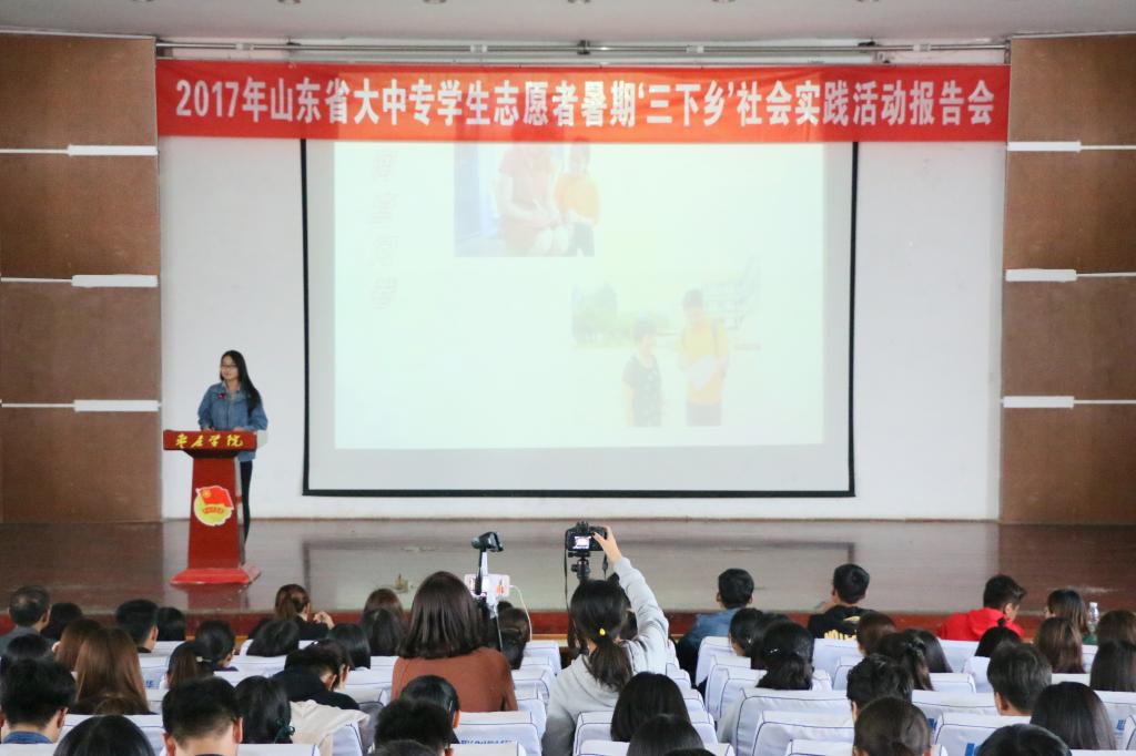 为进一步提升社会实践活动的育人效果,积极引导大学生交流实践体会、分享实践成果,10月11日下午,2017年山东省大中专学生志愿者暑期“三下乡”社会实践活动报告会在文科楼报告厅举办。