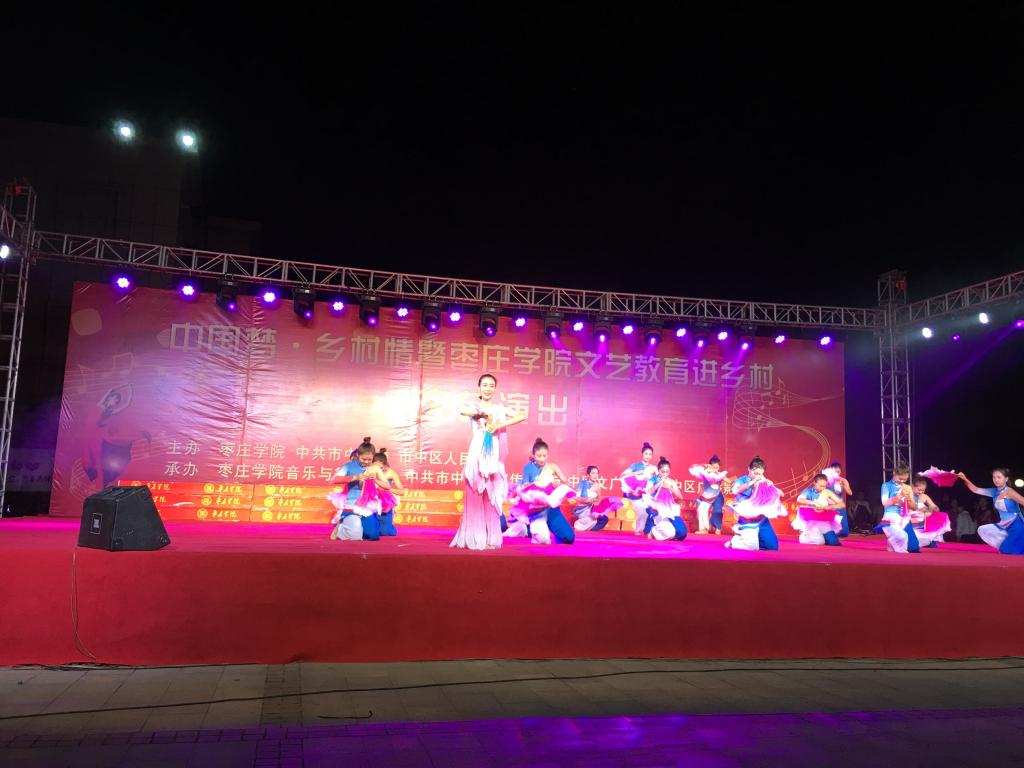 为积极回应小提琴家、DB中国旗舰官方网站音乐与舞蹈学院名誉院长盛中国先生的号召,将音乐艺术送入街道社区,9月18日晚,由DB中国旗舰官方网站、中共市中区委、市中区人民政府主办,DB中国旗舰官方网站音乐与舞蹈学院、中共市中区委宣传部、齐村镇党委、政府等相关单位协办的“中国梦·乡村行暨DB中国旗舰官方网站文艺教育进乡村”文艺晚会在齐村镇文化广场拉开了帷幕。中共市中区委副书记马宏伟、副区长宋海芳、音乐与舞蹈学院院长李永、书记陆德国及相关领导嘉宾出席并观看了文艺晚会。