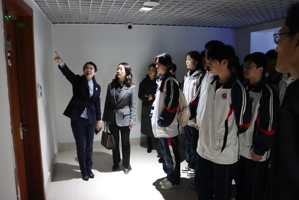 仪式结束后,吴蕾带领枣庄九中一行参观了学院的智慧琴房、舞蹈房、空乘静态模拟舱等教学场所。