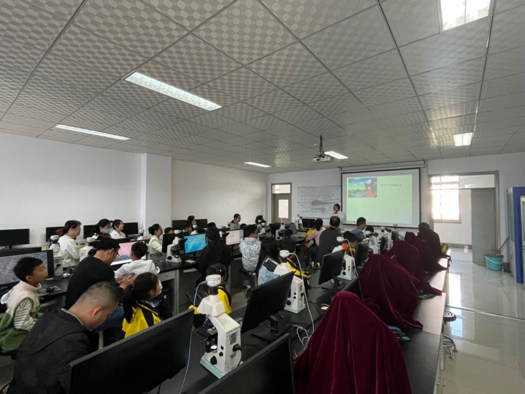食品科学与制药工程学院实验室主任杜健讲解了食品与制药实验教学示范中心的发展历史,全面介绍了其主要实验室分布,陪同参观并讲解了实验室。大家重点参观了烘焙中试车间、中药资源标本馆和显微数码互动实验室,并在老师的指导下进行了糕点制作和中药显微观察等互动。主讲教师用一个个生动活泼的故事还原了中医药的发展历程,通过标本讲解和显微观察中药材的微观结构,打开了学生们对中医药学的兴趣之门。