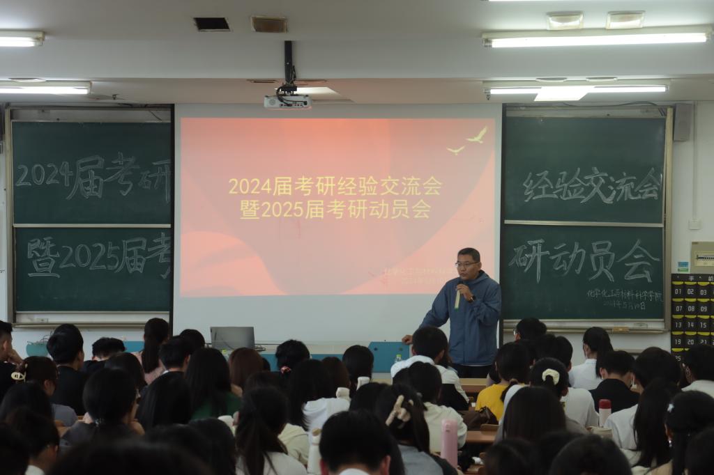 为更好激发学生的学习动力,营造良好的考研氛围,5月10日下午,化学化工与材料科学学院在市中校区综合楼1214教室举行考研经验交流暨2025届考研动员会。学院党委书记谭胜兵、全体辅导员、优秀考研学生代表和2025届有考研意愿的本科生参加会议。