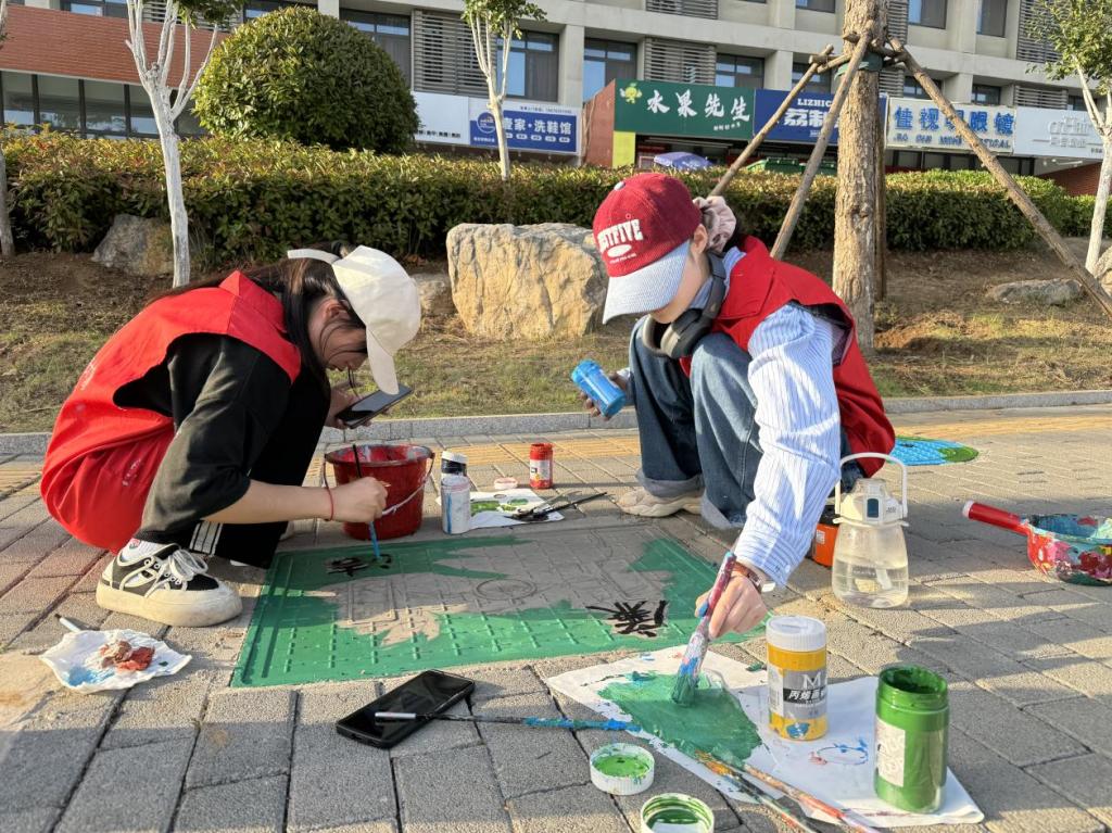 活动中,来自美术学院和传媒学院共60名美术与设计专业志愿者沿着办公楼、宿舍楼等周边路面井盖进行绘制,以井盖为画布,以中国传统文化、二十四节气、社会主义核心价值观、廉洁文化、节约粮食为主题重点绘制了奚仲路、匠心大道、鲁班路、希望大道等主干道。志愿者们用心创作井盖约300个,吸引了一批批同学前来打卡互动,成为校园里亮丽的一道风景线。