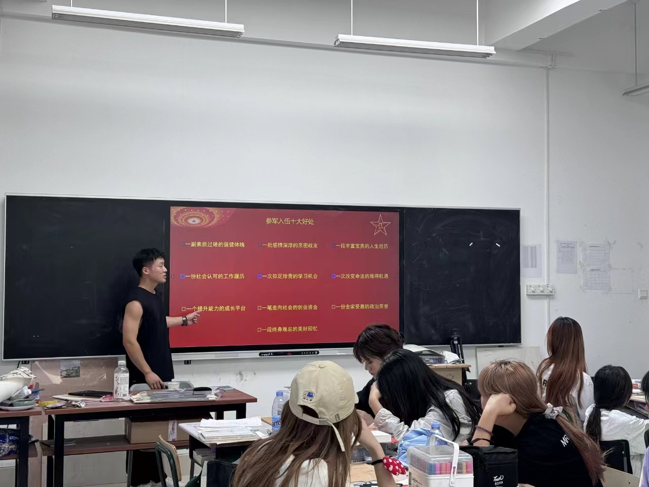 为扎实做好国防教育及征兵工作,6月12日下午,美术与艺术设计学院在博雅楼A502举办2024年秋季应征入伍宣讲会,在向广大学子普及征兵政策,鼓励有意向的学生积极报名参军,为国家国防事业贡献青春力量。