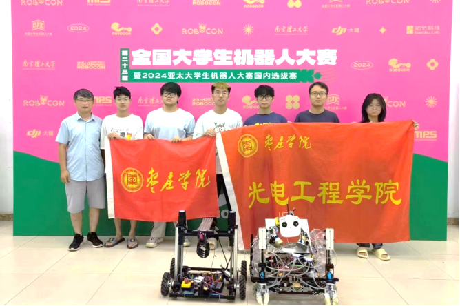 自本届赛事发布以来,该项比赛得到了学校高度重视和大力支持,组建了由光电工程学院牵头的光电科创机器人战队,该团队由骆继祥、李鉴洋、张浩楠、宋来福、曹浩田等30余名学生组成,在王加迎、王猛、奚宽浩老师的悉心指导下,潜心准备,积极备赛,经过约十个月的努力拼搏,最终在大赛中取得佳绩。