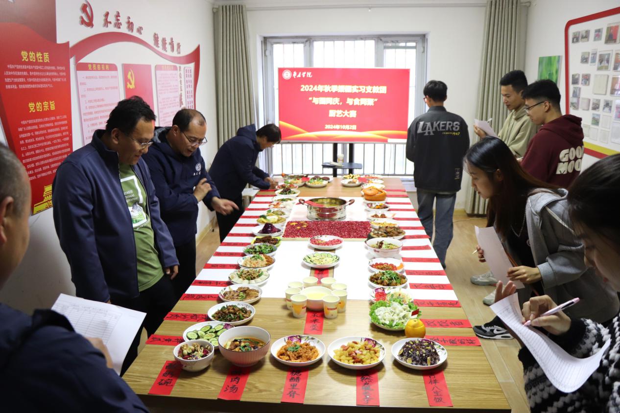 国庆佳节,金秋送爽。为庆祝中华人民共和国成立75周年,弘扬中华饮食文化,丰富支教团师生精神文化生活,10月2日下午,我校2024年秋季援疆实习支教团“与国同庆,于食同聚”厨艺大赛在翰林世家101室举办。东营援疆指挥部党委委员,疏勒县教育局党组成员、副局长赵永刚莅临指导,支教团带队教师及学生会各部部长参加活动并担任评委。