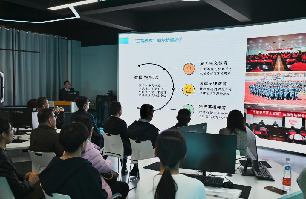 在枣庄理工学校开展民族团结教育,参观了铸牢中华民族共同体意识展厅、同心苑展室、红石榴广场等,欣赏了新疆民族舞蹈,共同感受中华民族艺术与文化交融,观看了民族团结进步宣传教育片,实地考察了现代制造技术中心及3D打印实训室,全面了解新疆中职班“三三育人模式”的办学经验和育人成果,深刻体悟了中华民族大团结的丰富实践。