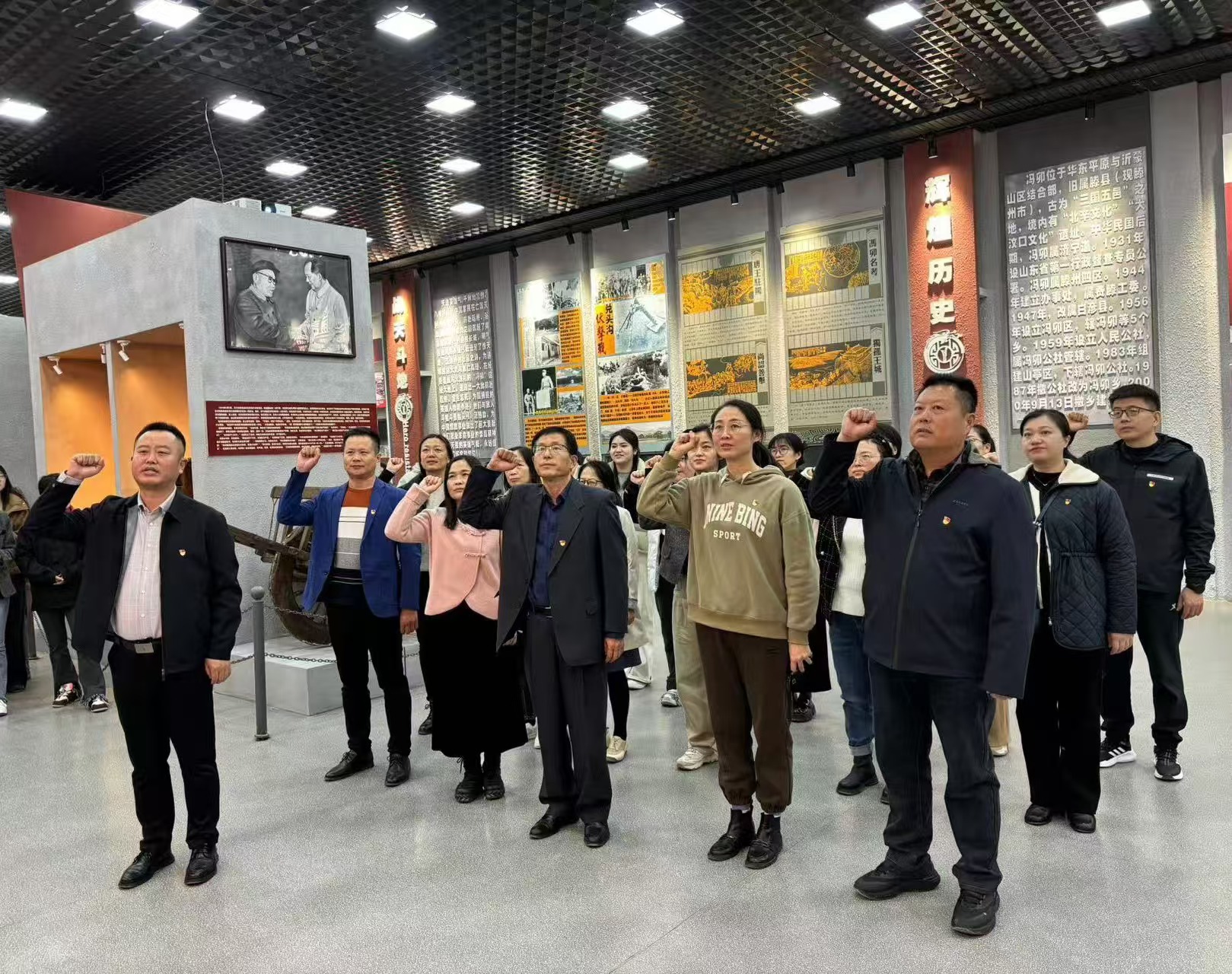 在冯卯镇岩马水库纪念馆,大家通过聆听讲解、参观、观看专题片,感受了建设者们克服万难、人定胜天的奋斗历程。这里不仅是枣庄市的水源保障,更是民族智慧与勇气的象征,是“岩马精神”的生动体现,全体党员带着崇敬和感念之情,庄严地重温了入党誓词。