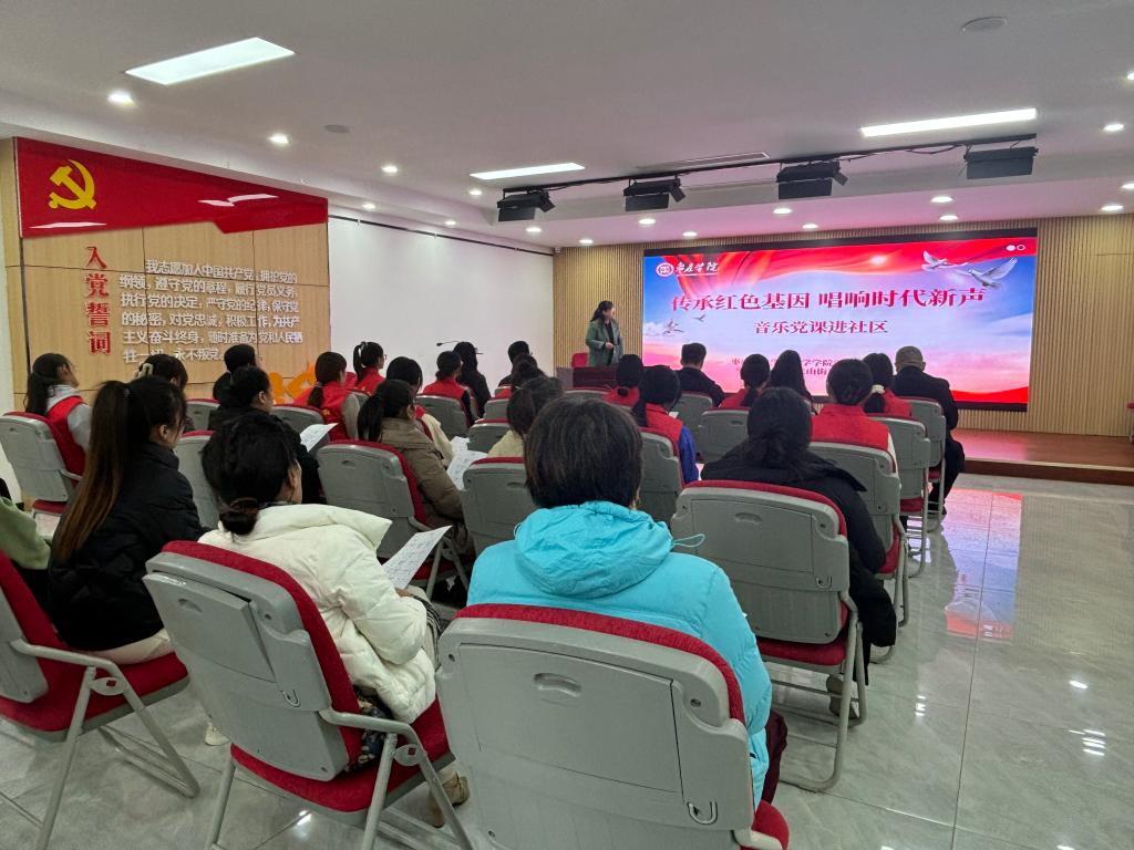 仪式结束后,生命科学学院党委副书记韩笑为大家带来了一节生动而富有创意的“传承红色基因 唱响时代新声”音乐党课。围绕中国共产党人的理想和精神谱系,结合丰富的图文和音视频资料,从音乐的创作背景、创作经过、歌曲内容及历史影响方面,带领党员群众在音乐党课中以史串歌,以歌叙史,再现党的奋斗历程,活动在全场高唱红色歌曲《如愿》的歌声中圆满落下帷幕。