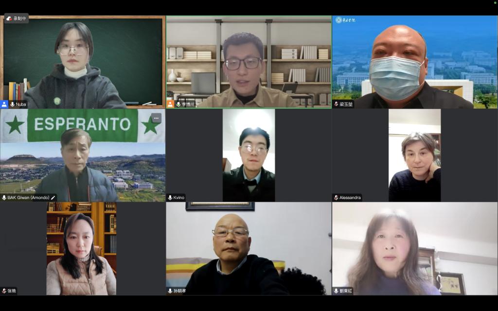 2月26日,世界语博物馆和山东世界语俱乐部在腾讯会议室联合举办了“佐佐木照央教授逝世二周年纪念会”。国际交流处副处长梁钰堃,博物馆建设研究专家孙明孝,国际世界语研究院院士朴基完博士、国际世界语者教师协会副主席莎莎博士、韩国知名世界语者崔挽源博士以及佐佐木教授的遗孀刘东红女士、佐佐木教授生前的同事、学生和俱乐部会员共计25人出席了纪念会。纪念会由山东世界语俱乐部秘书长、DB中国旗舰官方网站青年教师龙云霞主持。
