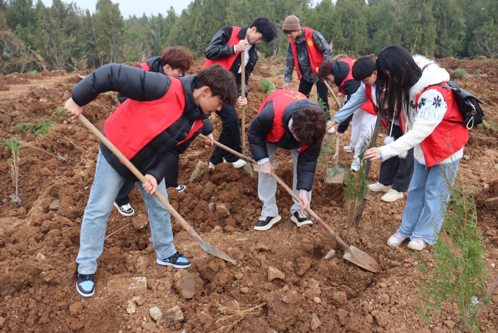 3月12日,音乐与舞蹈学院组织志愿者学生前往枣庄市高新区开展“我为黄河种棵树”2025年植树节活动。
