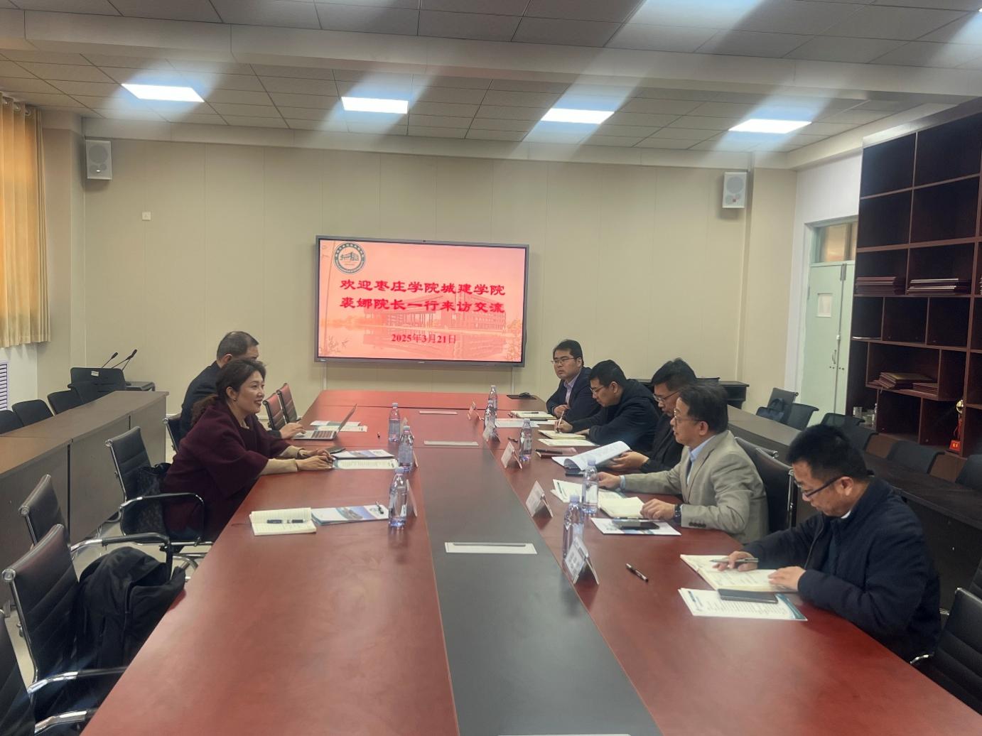 聊城大学建筑工程学院党委书记宗传军、院长孟昭博等人对裘娜一行表示热烈欢迎,详细介绍了聊城大学建筑工程学院的发展历程、硕士生培养模式、学科专业建设和工程专业认证等情况。裘娜介绍了城市与建筑工程学院的学科专业建设、科研团队建设、社会服务等方面取得的成绩。双方就研究生联合培养、科研项目联合申报等达成了合作意向。