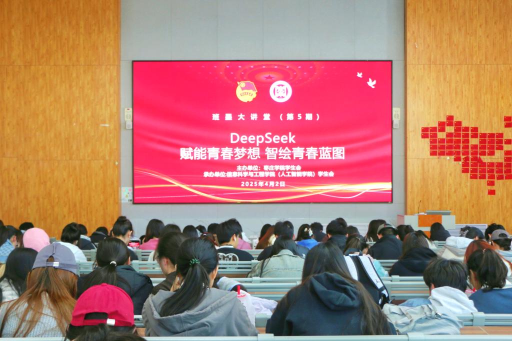 为贯彻落实国家科技创新驱动发展战略,积极响应高校对前沿技术知识普及与人才培养的要求,4月2日,我校在薛城校区增信楼113、市中校区综合楼报告厅同步进行“班墨大讲堂”第五讲––DeepSeek:赋能青春梦想,智绘青春蓝图交流会。本次活动由校团委主办,信息科学与工程学院(人工智能学院团委)承办,各学院共计600余名学生代表参与。