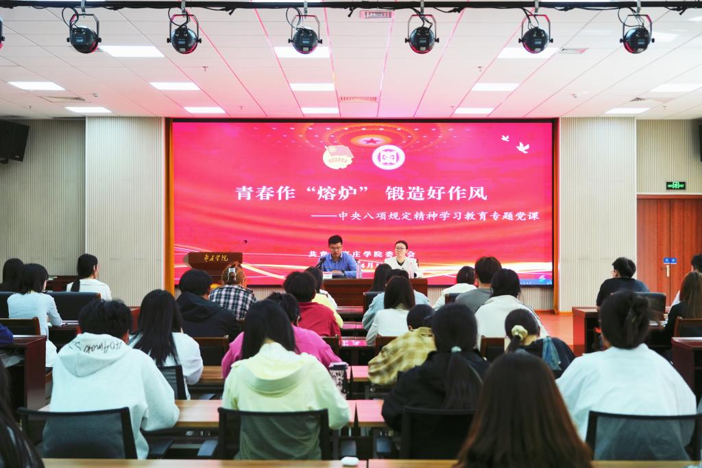 开班式上,校团委书记袁心以“青春作‘熔炉’ 锻造好作风”为题结合深入贯彻中央八项规定精神学习教育为全体学员上专题党课,并对全体学员提出了四点期望:一是以信仰为舵,筑牢思想根基,在理论学习中淬炼政治品格。二是以实践为帆,锤炼过硬本领,在知行合一中彰显青春担当。三是以责任为锚,发挥表率作用,在示范引领中凝聚青年力量。四是以廉心为盾,涵养清风正气,在正风肃纪中锻造青年风骨。
