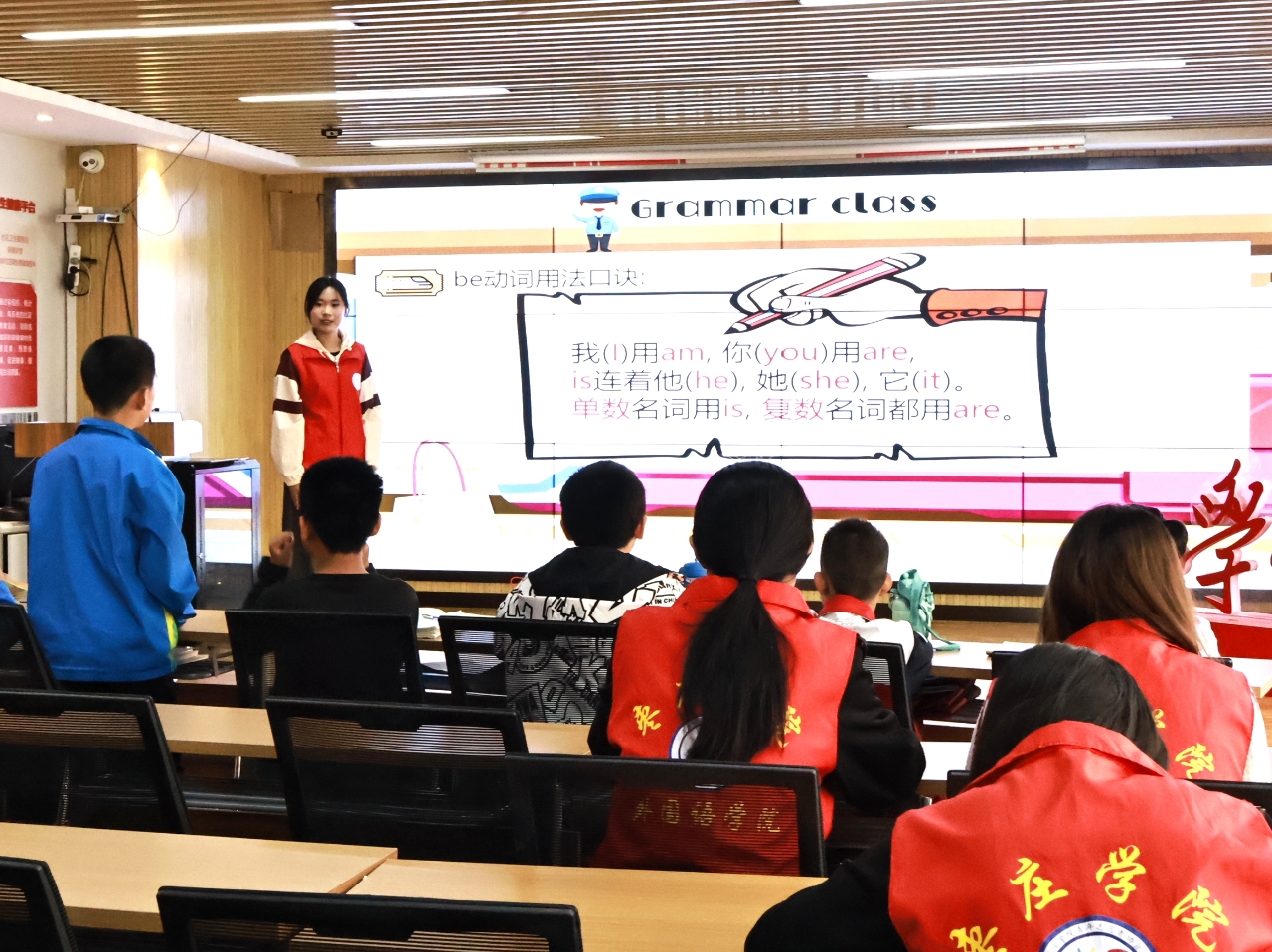 志愿者用精心准备的PPT,融入丰富趣味元素,让课堂精彩纷呈。播放的英文动画生动有趣,迅速吸引孩子们的注意力。活动环节,单词接龙、情景对话等游戏,让孩子们积极参与,在欢乐中提升英语运用能力。为强化孩子们对英语词汇的理解,志愿者创新教学方式,融入剪纸、绘画艺术,让单词学习变得生动可感,记忆深刻。