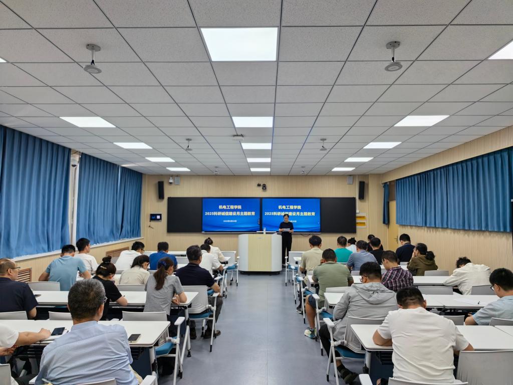 为响应学校科研诚信建设月活动号召,5月28日下午,机电工程学院在市中校区理工楼2408组织全体教师开展科研诚信主题教育活动,活动由院长卢纪丽主持。