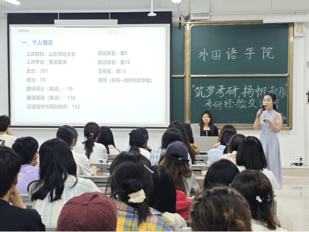 为帮助考研学子明晰考研方向,掌握科学备考方法,增强考研信心,5月27日,外国语学院(大学英语教学部)在薛城校区崇德楼4305教室举办“筑梦考研,扬帆起航”考研经验交流会。此次分享会邀请考研成功的学生,为同学们带来了一场考研经验分享盛会。