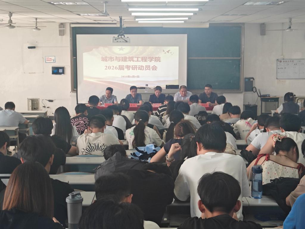 为进一步激发学生考研热情,明确考研目标,6月4日,城市与建筑工程学院在市中校区理工楼2505教室举行2026届考研动员会。学院党政领导、教研室主任、辅导员、2025届优秀毕业生代表及2026届全体学生参与。