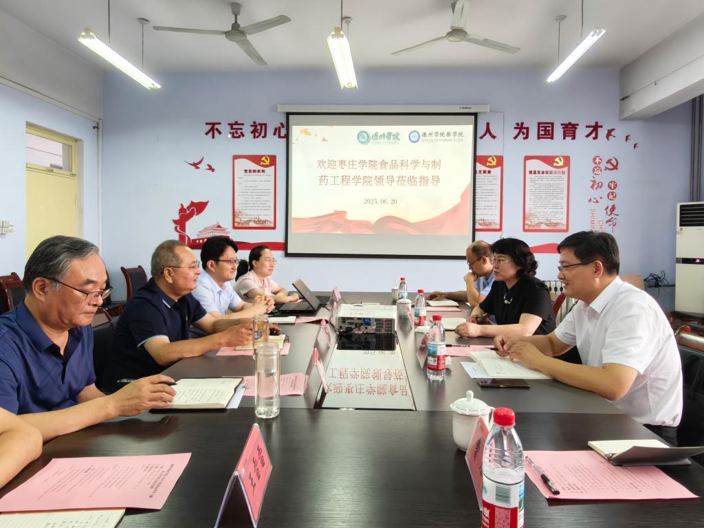 在德州学院药学院,党委书记冯立顺、院长朱超等热情接待了学院一行并举行座谈会。双方围绕应用型人才培养、师资队伍引育、硕士点建设、党建等议题进行了深入交流。座谈会后, 学院一行人员实地考察了新型药物辅料与缓控释制剂山东省工程研究中心。