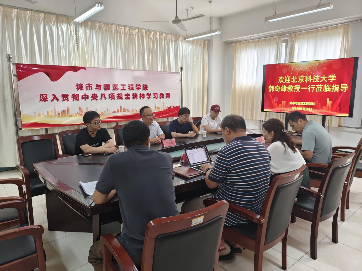 座谈中,裘娜对郭奇峰的到来表示诚挚欢迎,并简要介绍了城市与建筑工程学院的基本情况,包括学院的学科专业设置、师资队伍建设、教学成果以及科研发展方向等。郭奇峰介绍北京科技大学资源与安全工程学院前沿研究和特色优势专业,分享了北京科技大学资源与安全工程学院在学科特色、前沿研究及人才培养等方面的经验。双方就积极拓展合作领域、持续加强双方的学术交流与合作等内容进行了深入交流。