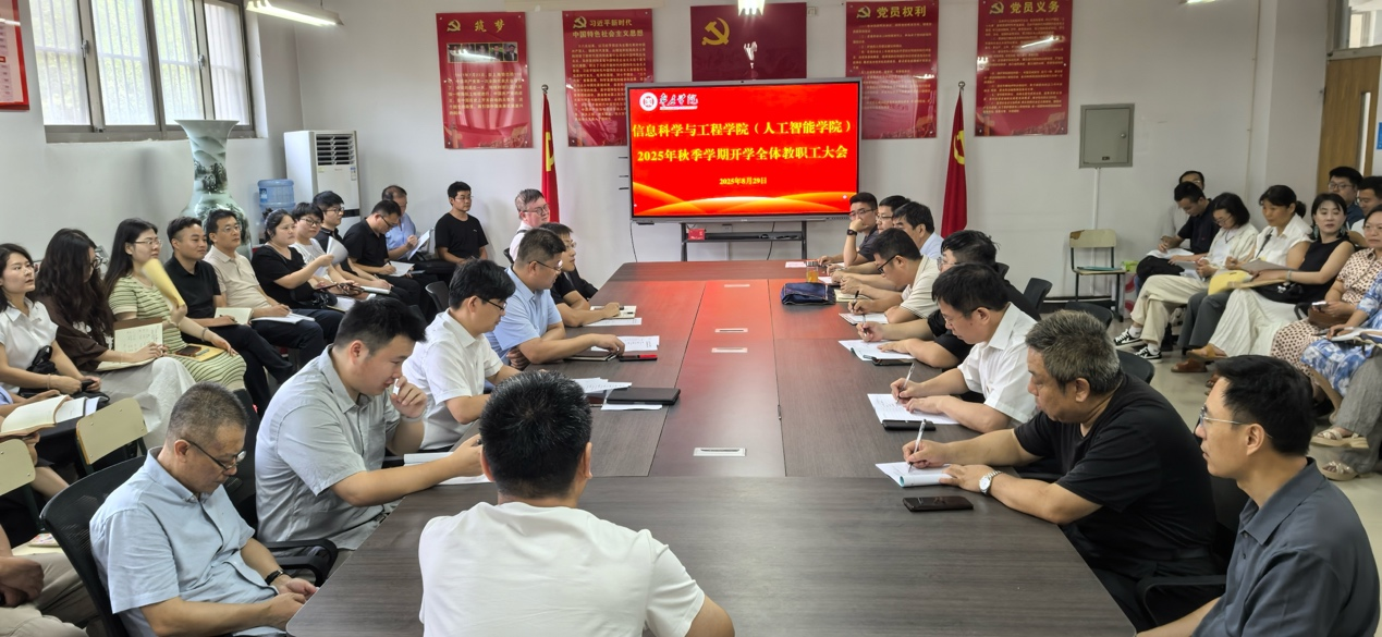 8月30日上午,信息科学与工程学院(人工智能学院)在市中校区理工楼资料室2121召开2025年秋季学期开学全体教职工大会。学院党政领导、全体教职工及合作企业驻校教师参加会议,学院党委书记姬广华主持会议。