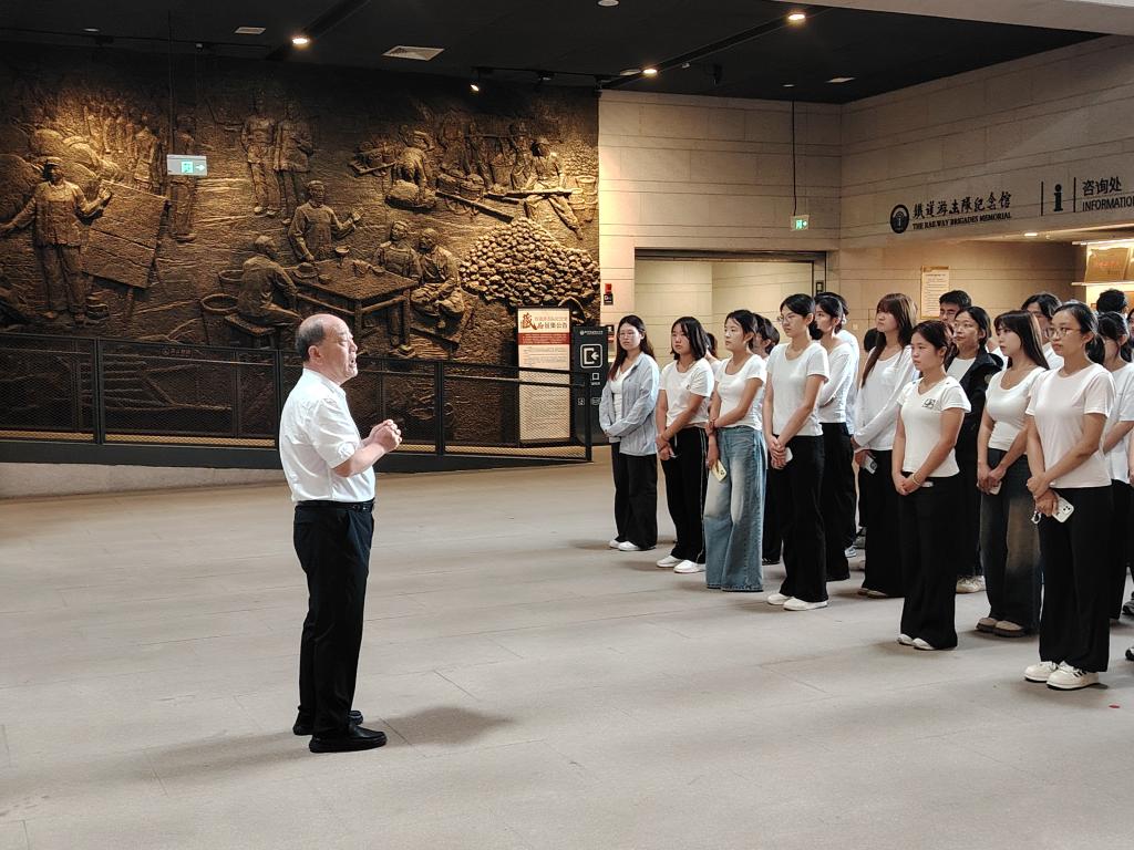 仪式结束后,邓兴珍在铁道游击队纪念馆里为马院师生讲授了一堂生动的思政课。