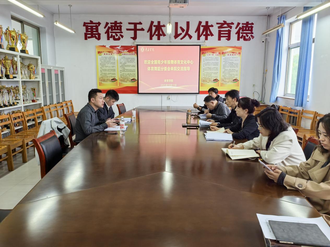 10月11日下午,全国青少年操舞体育文化中心体育舞蹈分委会、山东省演出行业协会国标舞委员会秘书长邢政、副主任欧懿来体育学院座谈交流。学院党政领导及体育艺术教研室相关教师参加了座谈。