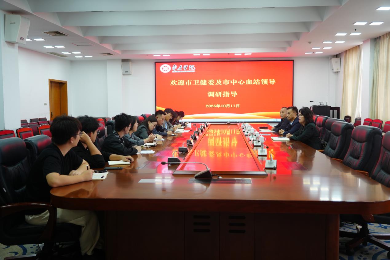 10月11日上午,枣庄市卫健委二级调研员张勇、市中心血站站长胡卫国、副站长王光乾一行到我校调研无偿献血工作,校团委、后勤服务处相关负责同志、二级学院团委书记代表、学生代表参加活动。
